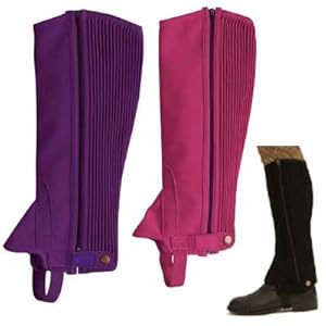 These synthetic suede half chaps are extremely durable. Machine washable. Half Chaps have a heavy duty zipper. Half Chaps have