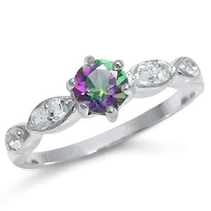 Mystic & White Topaz 925 Sterling Silver Engagement Ring