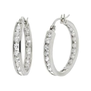 Sterling Silver Cubic Zirconia Medium Round Hoop Earrings